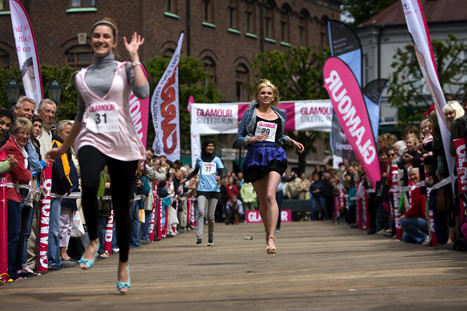正午時分我們上街採買,正好遇見在大廣場舉辦的高跟鞋女孩賽跑活動